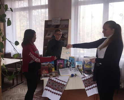 Також з нагоди дня захисників та захисниць України у 8 класах було проведено бібліотечний урок "Заради миру", після якого у читальному залі бібліотеки усі охочі могли взяти участь у Всеукраїнському онлайн конкурсі " Мир - мова щастя". До слова, усі учасники конкурсу отримали високі досягнення та були нагороджені дипломами І ступеня.